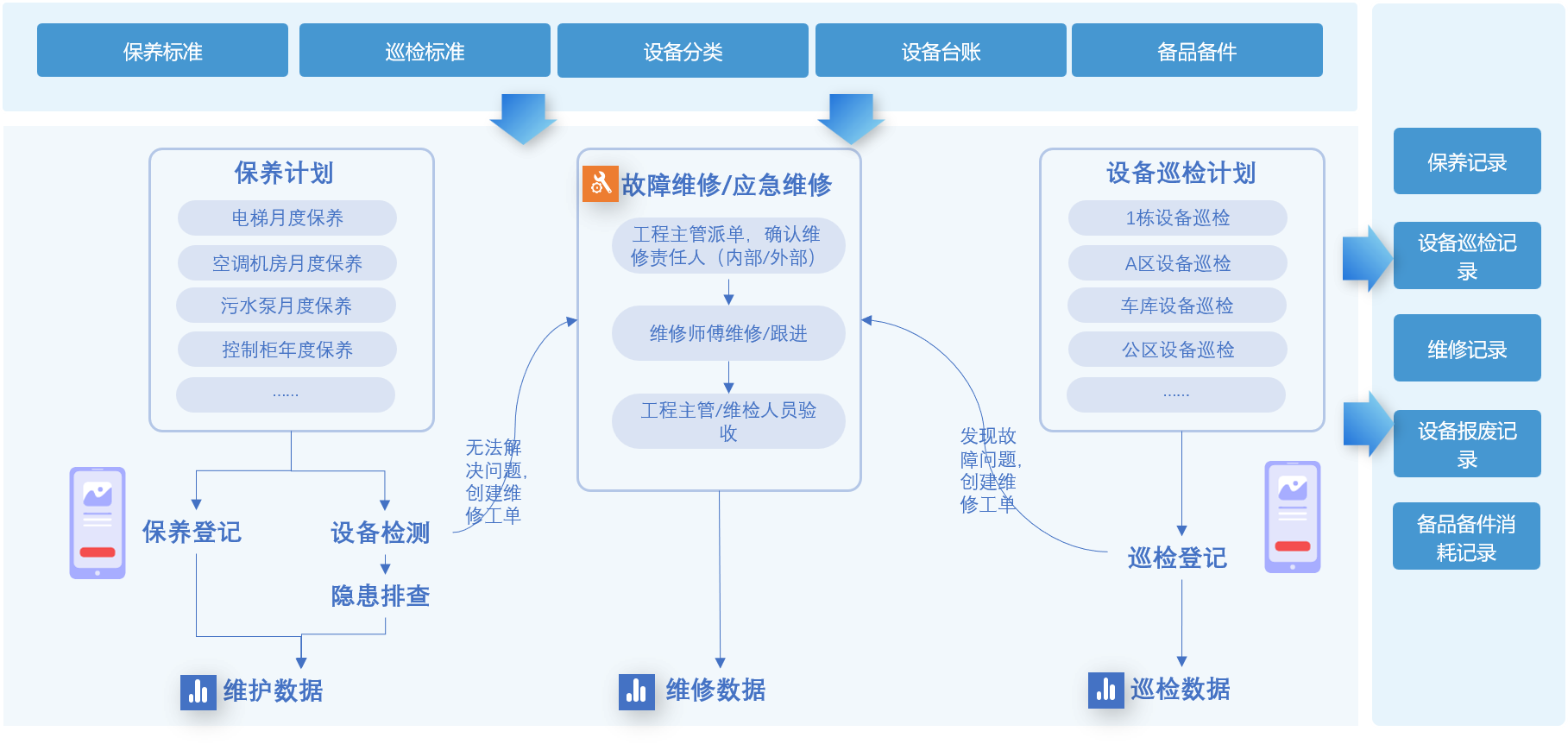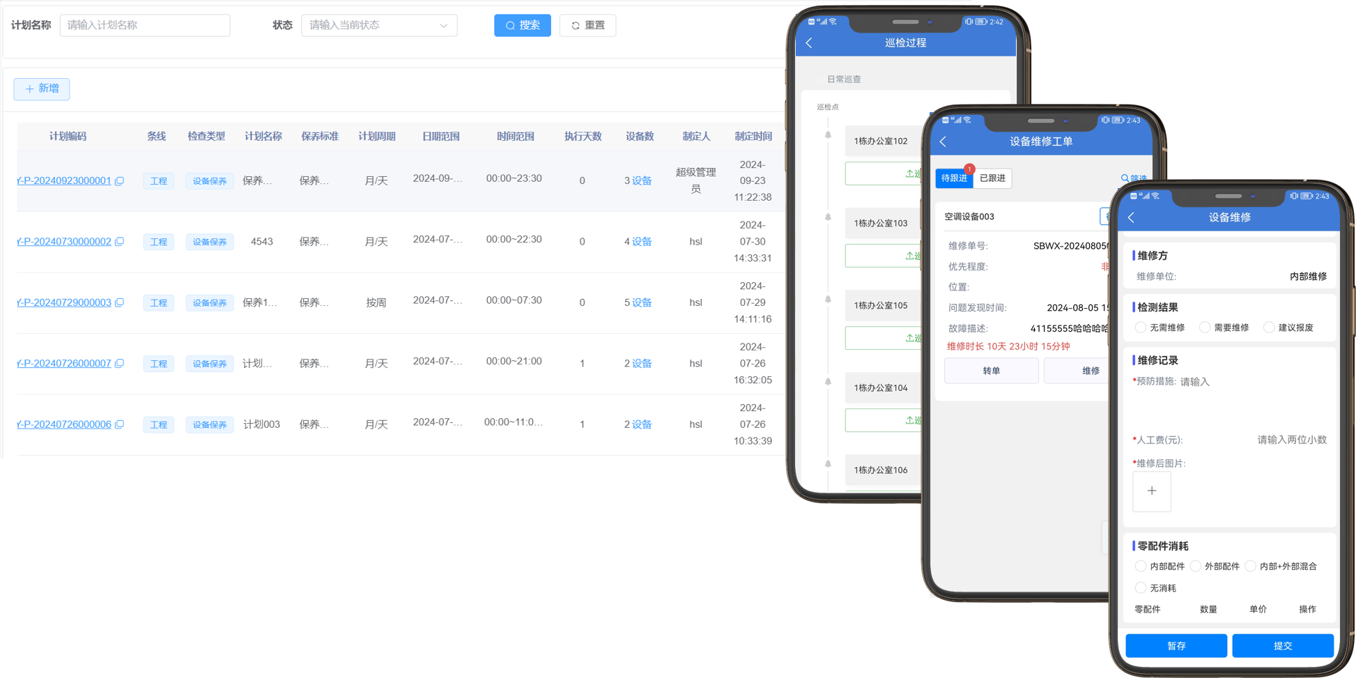 制定合理的设备运维标准,以工单形式定期推送设备保养、保修计划,结合工作流催办功能,工程人员按时、合规进行设备运维、检修,确保各项设备管理运作及时、有效执行,快速排除故障隐患,避免危险发生